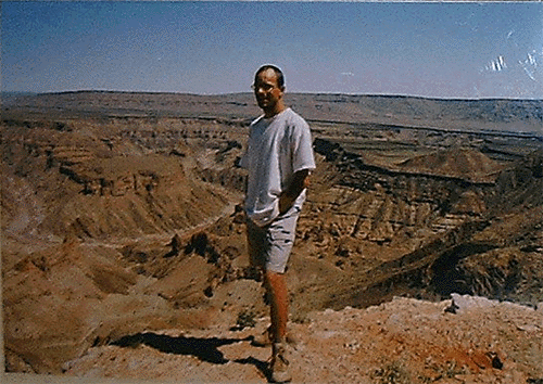 Der Protagonist am FishRiverCanyon (das idt. Foto existiert 10 Jahre früher am GrandCanyon in den USA... Veränderungen ?)