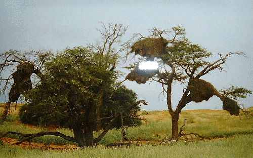 Ein Baum. Mit Vogelnestern. Zu tausenden zu sehen, aber v.a. an Strommasten...